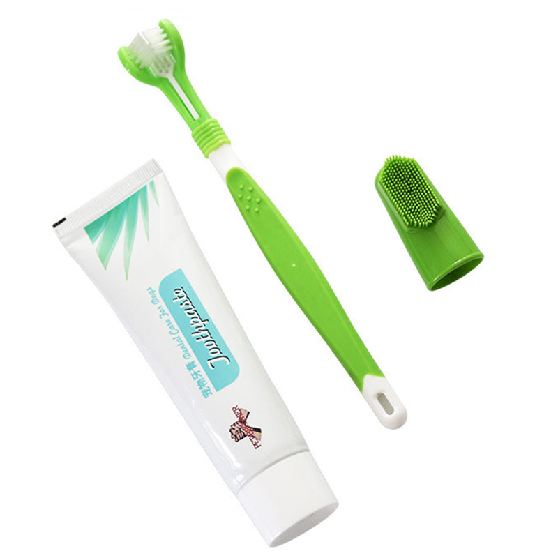 宠物牙刷牙膏套装猫长短刷头牙刷香草味口腔清洁产品套装 【牙膏75g+长柄牙刷+短柄牙刷】
